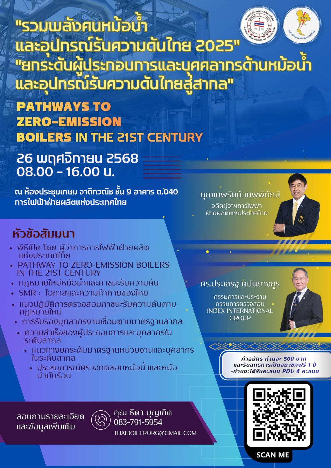 วันที่ 22 ตุลาคม 2568 สมาคมอุตสาหกรรมไฟฟ้าแห่งประเทศไทย (TESIA) และ สมาคมหม้อน้ำและภาชนะรับความดันไทย ได้จัดพิธีลงนามกรอบความร่วมมือด้านวิชาการ โดย คุณสุวรรณา มากเกษร นายกสมาคมอุตสาหกรรมไฟฟ้าแห่งประเทศไทย และ คุณชำนิ โมสกุล นายกสมาคมหม้อน้ำและภาชนะรับความดันไทย ร่วมลงนามกรอบความร่วมมือด้านวิชาการ ดร.สายัณห์ ปานซัง ในฐานะกรรมการที่ปรึกษา สมาคมหม้อน้ำและภาชนะรับความดันไทย และ คุณวรวรรธ ฉัตรแถม ในฐานะกรรมการและฝ่ายวิชาการ และประธานคณะอนุกรรมการวิชาการ สมาคม TESIA ร่วมลงนามเป็นพยาน และได้รับเกียรติจากกรรมการ อนุกรรมการ ที่ปรึกษาของทั้งสองสมาคมร่วมเป็นสักขีพยานในพิธีลงนาม เมื่อวันที่ 22 ตุลาคม 2568 ณ การไฟฟ้าฝ่ายผลิตแห่งประเทศไทย (กฟผ.) สำนักงานใหญ่ จ.นนทบุรี โดยมีขอบเขตของความร่วมมือ 3 มิติหลัก ดังนี้